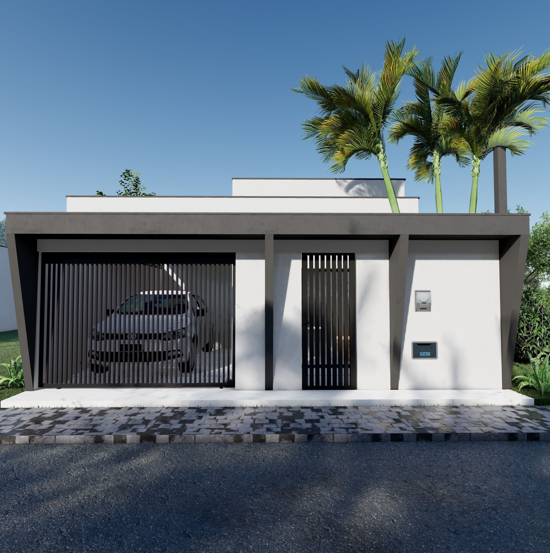 Residência térrea, contendo 2 Quartos, Sala integrada com Sala de Jantar e Cozinha integradas e Área Gourmet. Um ambiente bem dividido, agradável e uma fachada clean imponente e marcante. lugar ideal para relaxar com conforto